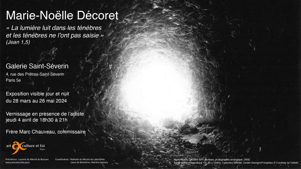 L’œuvre exposée ce printemps à la Galerie Saint Séverin est issue de la série Tunnels initiée par Marie-Noëlle Décoret en 1999. Elle a été choisie pour entrer en résonance avec le temps liturgique, le temps pascal.
