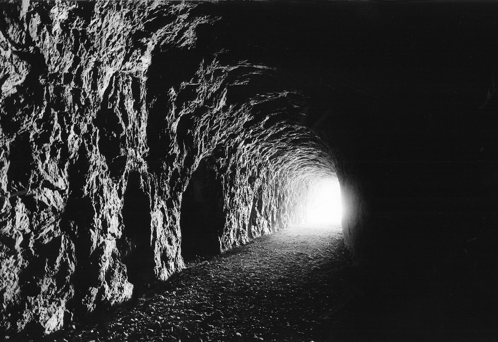 Ces photographies argentiques nécessitent un long travaille de pose pour pouvoir capter les subtilités de l’obscurité, saisir la présence de la lumière dans les ténèbres. Les Tunnels ont été choisis par Marie-Noëlle Décoret car taillés de la main de l’homme.