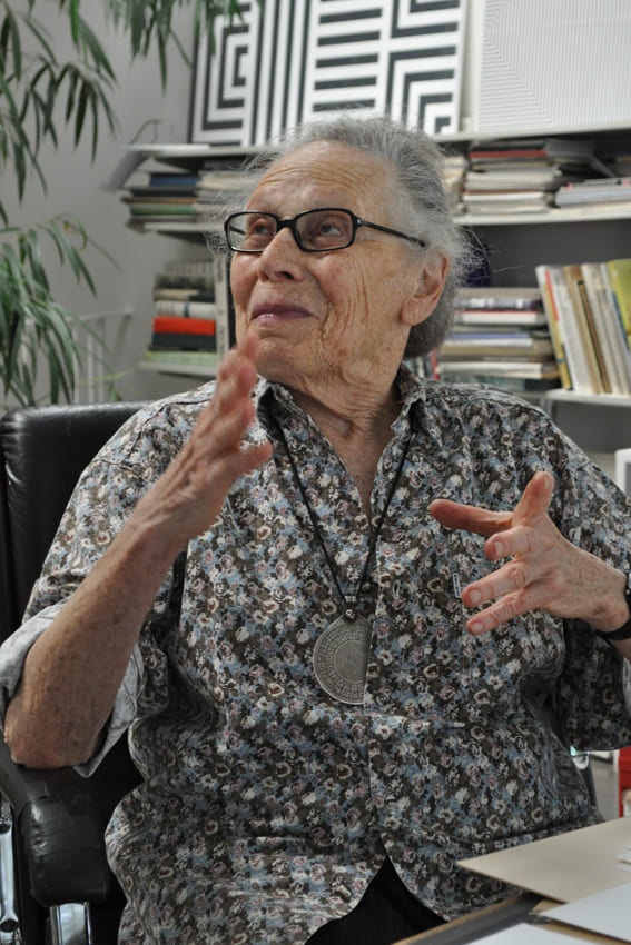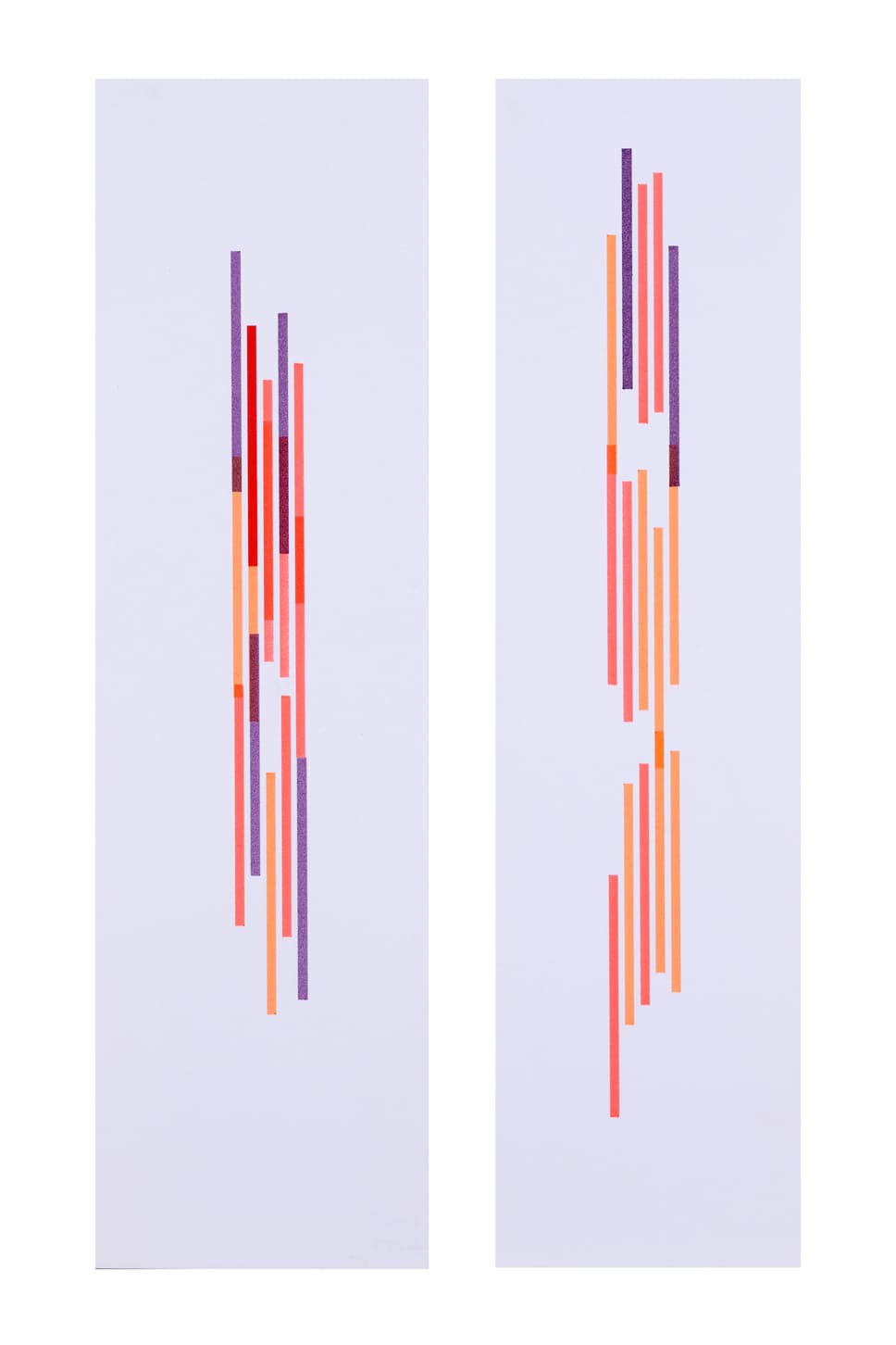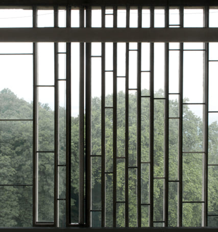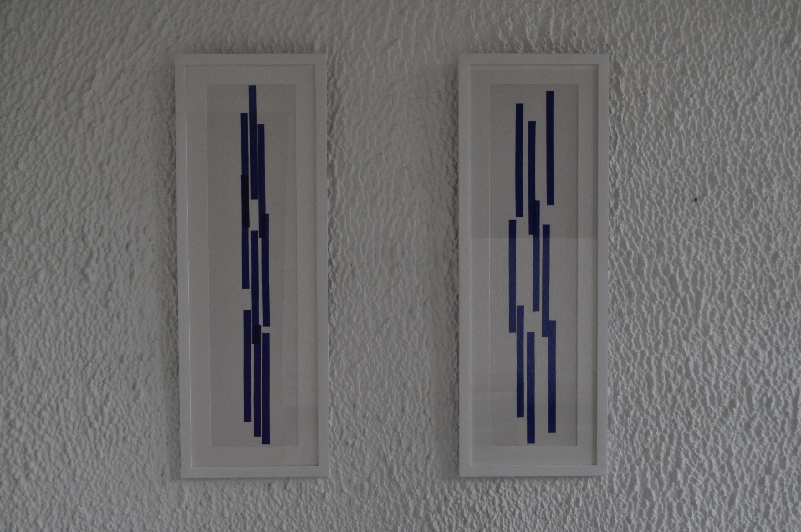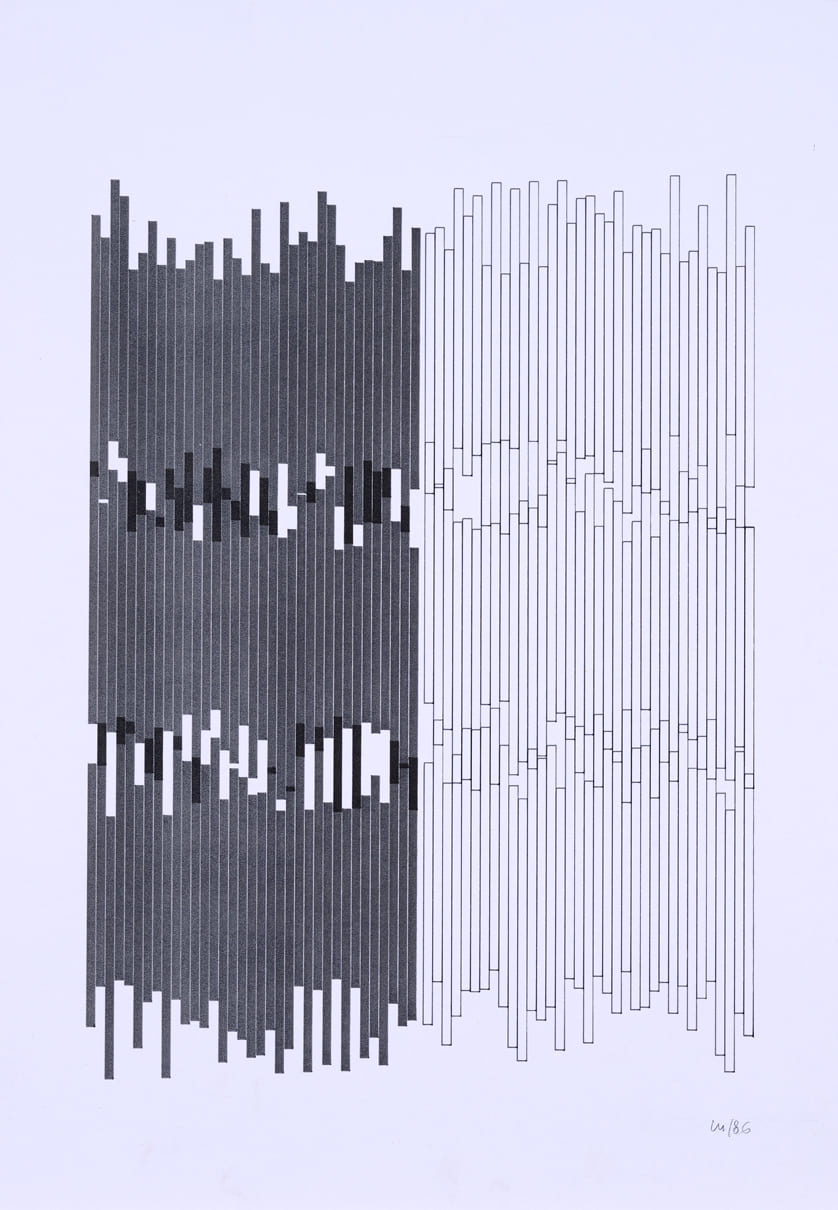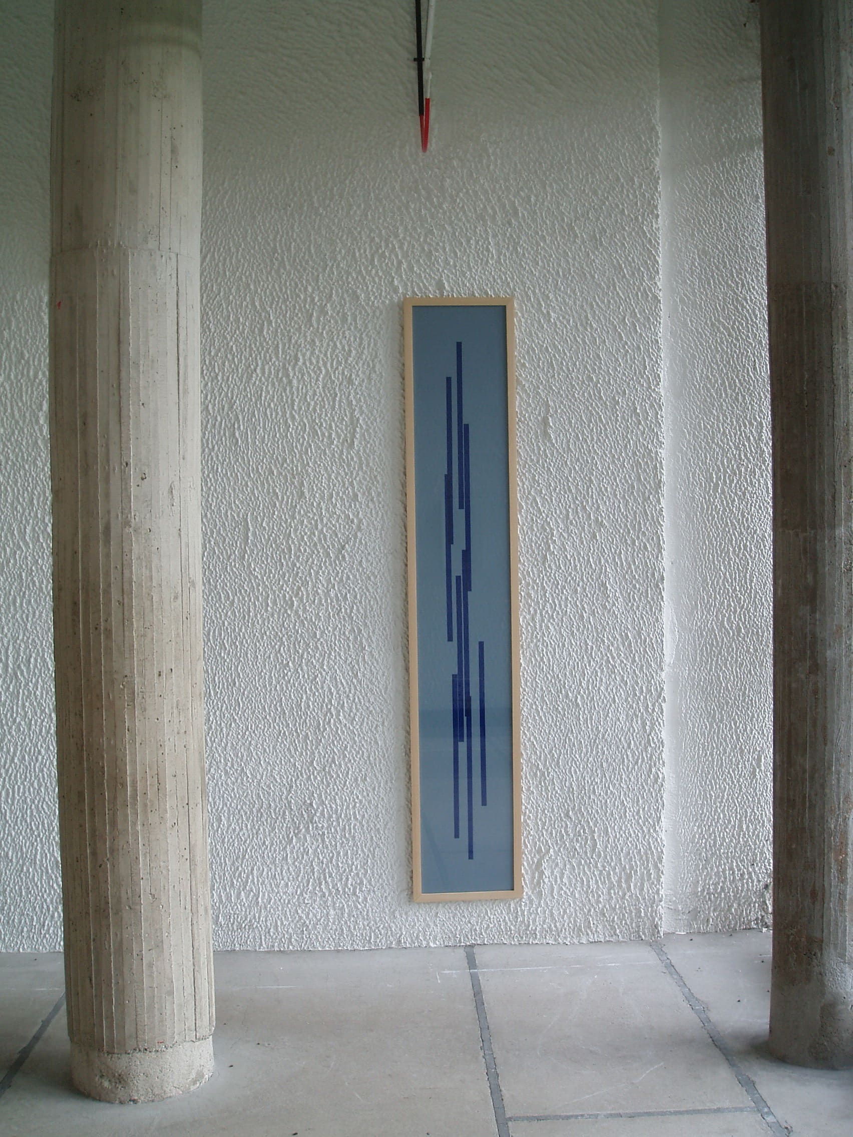 – les rythmes verticaux des œuvres de Vera Molnar, peintre de l’abstraction géométrique, entrent délicatement en dialogue avec les pans de verre ondulatoires de Xenakis ;