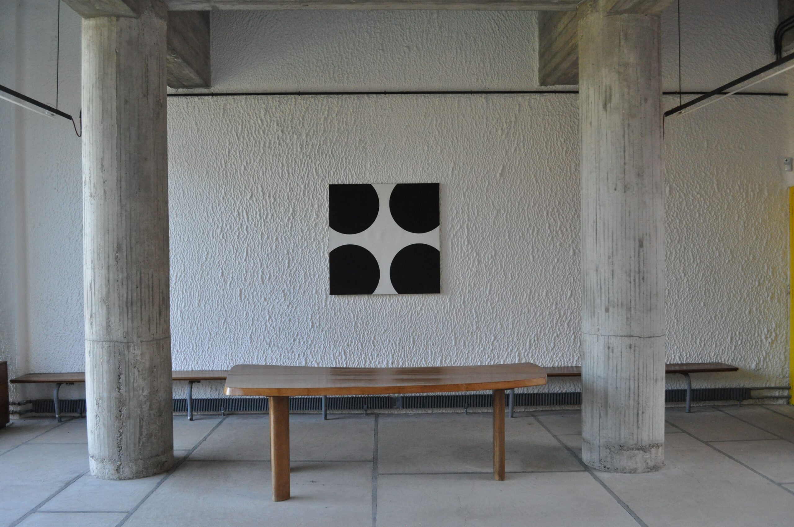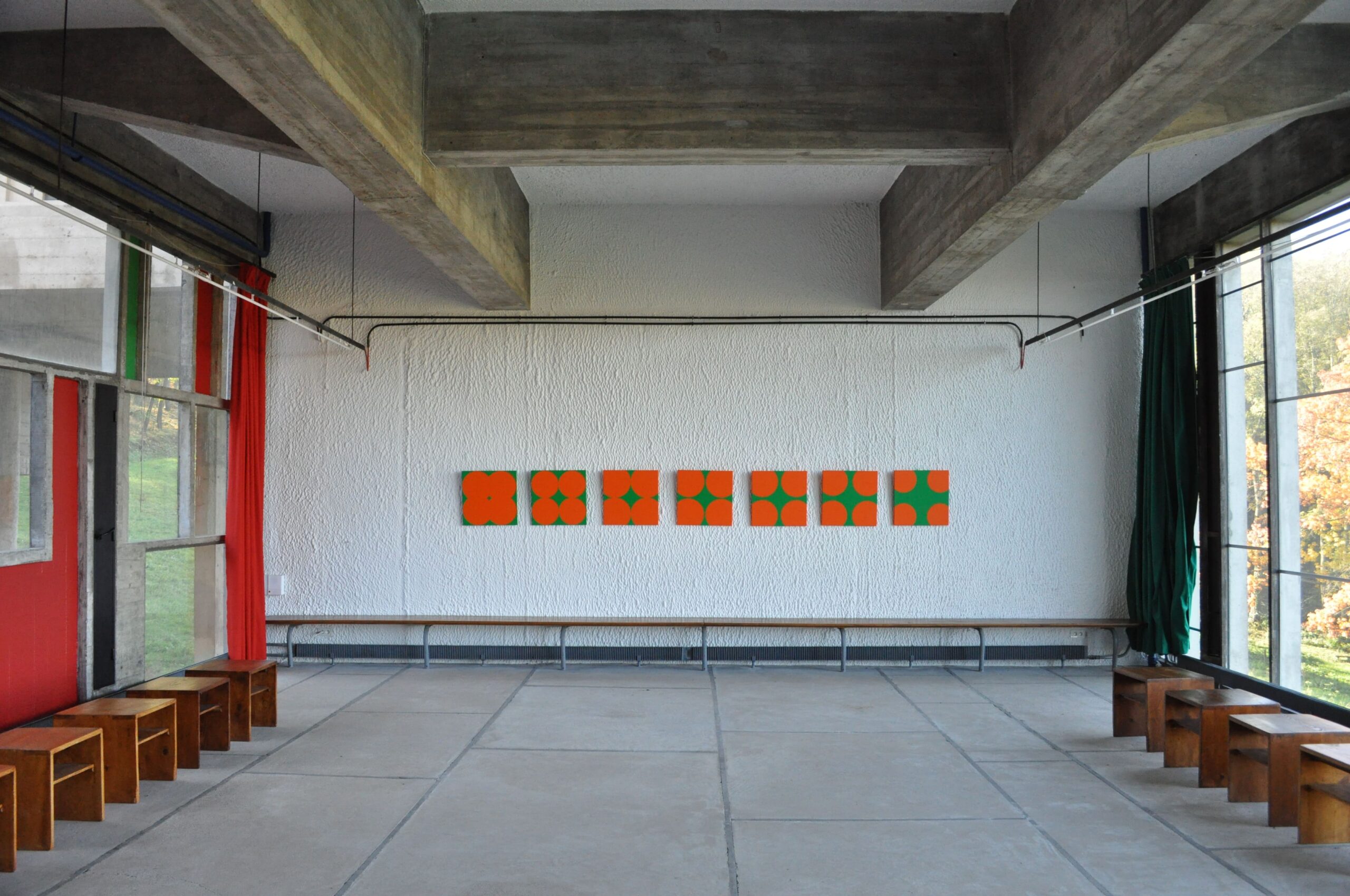 En choisissant ces trois artistes, nous avons voulu montrer la diversité, la richesse et la subtilité du langage de l’abstraction géométrique. L’iconographie de ce catalogue, réalisée en grande partie par le frère François Diot, rend compte du dialogue entre les œuvres exposées dans les espaces conventuels et l’architecture de Le Corbusier, et propose plusieurs rapprochements avec certaines vues du bâtiment. Ce catalogue livre aussi quelques instants privilégiés grâce aux photos prises chez les artistes ou lors de leur venue au couvent.
