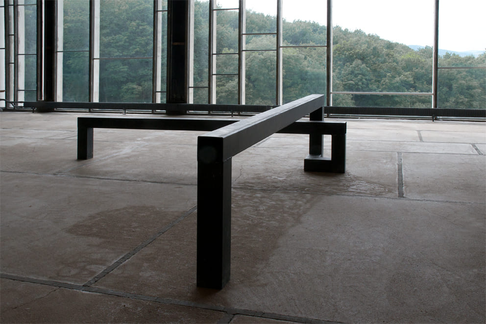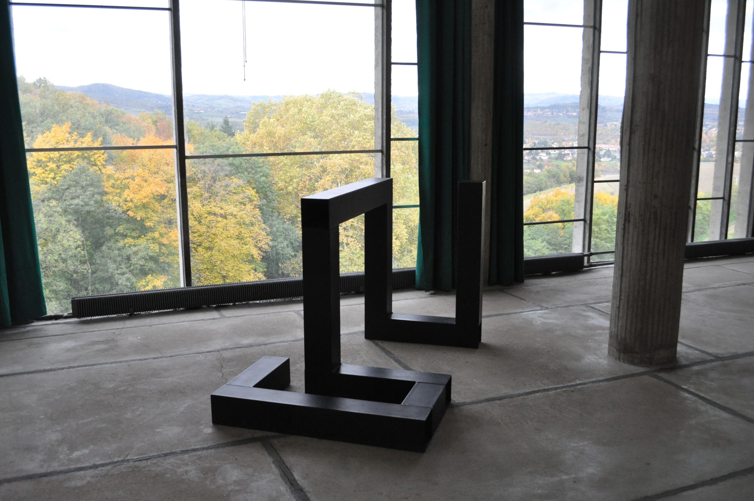 – les sculptures puissantes et silencieuses de Ian Tyson, sur lesquelles vient jouer la lumière, font écho à la structure de béton du bâtiment.