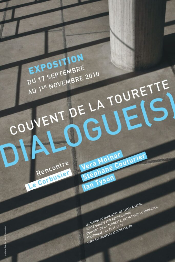 La présente exposition prolonge l’expérience initiée l’an dernier par les frères dominicains avec François Morellet, en offrant de nouveau à des artistes contemporains la possibilité d’un dialogue avec l’architecture du couvent de La Tourette. Cette année trois artistes – Vera Molnar, Stéphane Couturier et Ian Tyson – sont invités, le temps d’une exposition, à faire entrer leur travail en résonance avec celui de Le Corbusier. Cette rencontre entre l’architecture de La Tourette et ces artistes, qui exposent des œuvres choisies ou créées en fonction d’elle, se propose de renouveler notre regard sur le bâtiment à travers des approches, des techniques et des supports très différents :