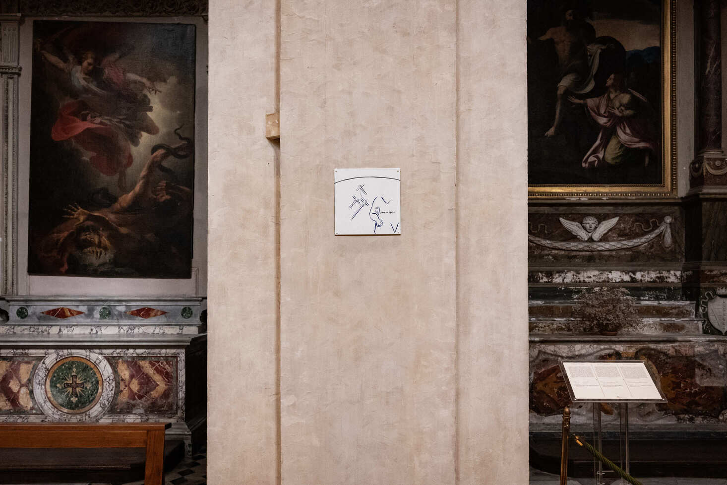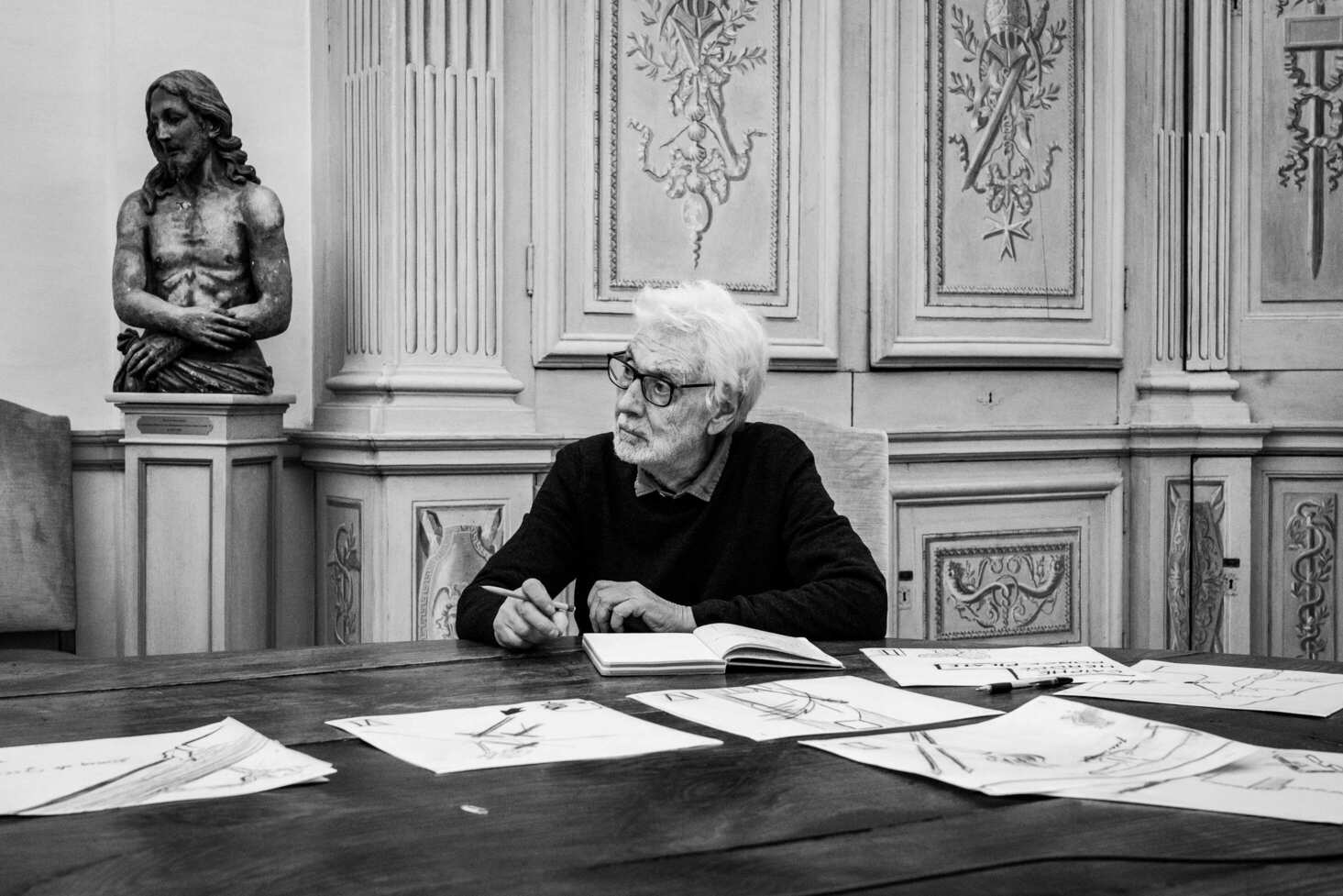 « J’ai appréhendé les moments, le factuel universellement connu, le nom des protagonistes, les outils et les objets, les lieux. (…) J’ai la conviction que le chemin de croix manifeste au-delà du monde chrétien la souffrance universelle. »